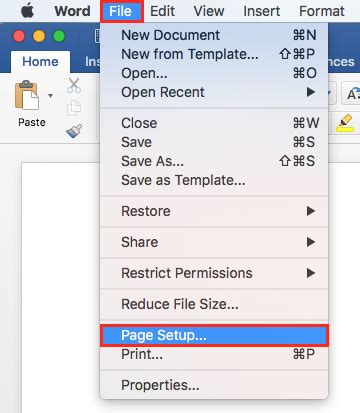 how to get to page setup in word on mac